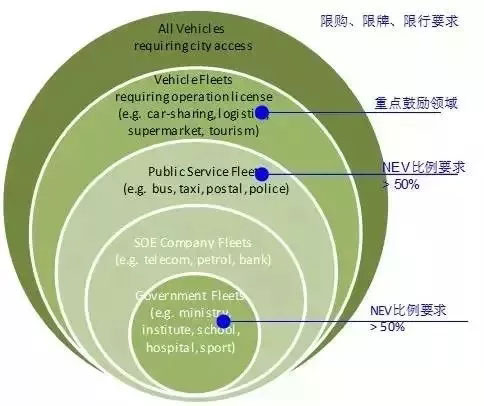 国家新能源汽车(NEV)推广计划里各领域NEV比例目标