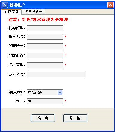 (1)新增帐户:如果您要使用本软件至少需要建立一个帐户,您也可以建立多个帐户。如果各个帐户之间没有设置访问口令您还可以在这些帐户中来回切换。每个帐户的发送记录/通讯录/短信模版都是互相独立的。