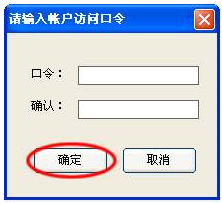 (4)设置访问口令:在本软件中为了保护您建立的帐户不能被别人随意使用,可以通过为自己的帐户设置访问口令来实现。访问口令只在本机上有效。设置访问口令如下图:帐户->访问口令