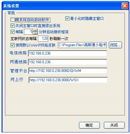 系统设置:主要是系统参数的设置(见下图),有九个参数可以进行设置,其中最主要的[换肤功能]就在这里。