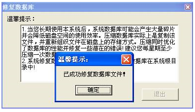 点击“是”即可修复数据库出现如下图