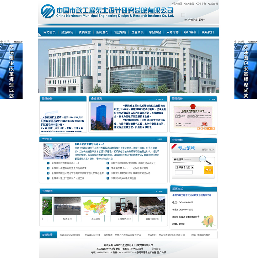 中国市政工程东北设计研究总院有限公司创建于1961年,伴随国家的建设与发展,已从主业给排水咨询设计成长为多领域并进、专业配套齐全、技术力量雄厚的高新技术企业。
