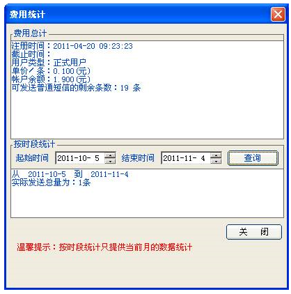 (2)按时段查询费用和发送量:查询某段时间内的发送量统计信息。