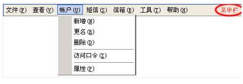 帐户管理功能包括:新增帐户、帐户更名、删除帐户、设置访问口令、帐户属性。