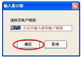 (2)帐户更名:如果您需要修改您的“帐户昵称”可以通过帐户更名实现。帐户更名并不是修改您的登陆帐户要修改“登陆帐户”请在“属性”中修改。帐户更名如下图:帐户->更名