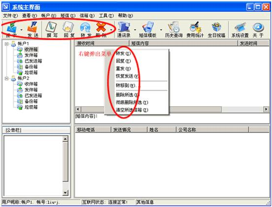 (1)接收短信:如果您的帐号有独立的端口号,那么您的客户端就可以直接收取别人回复的短信。