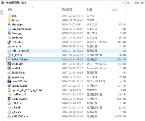 (2)在软件存放目录下找到 RePairDB.exe 双击。