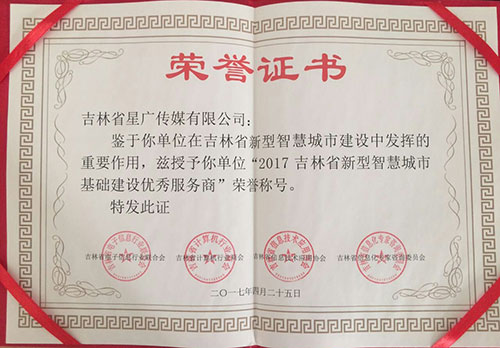 热烈祝贺365bet娱乐网址荣获“2017吉林省新型智慧城市基础建设优秀服务商”称号